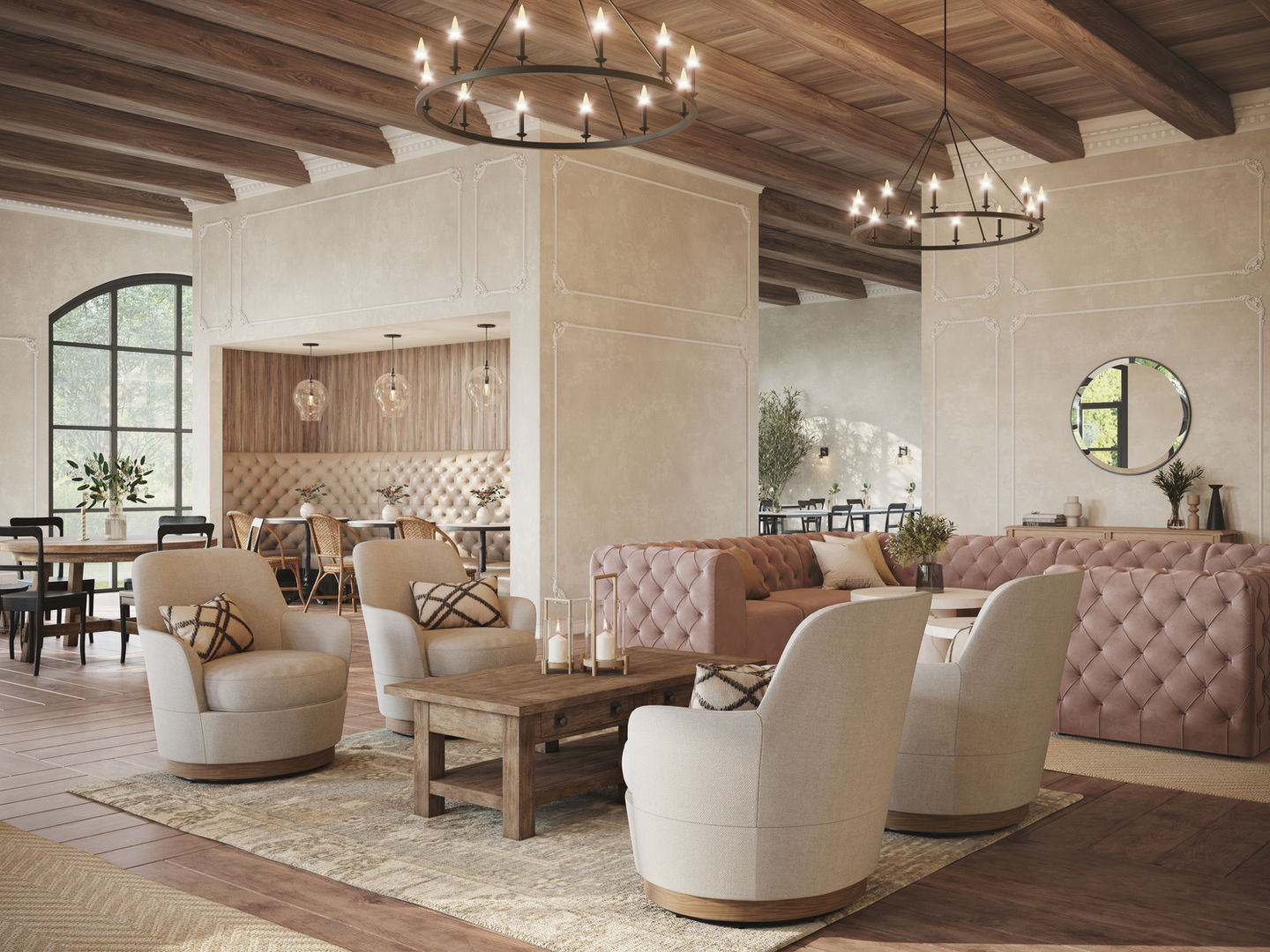 Created commercial spaces ranging from offices, restaurants, and hotels in several different design aesthetics to showcase the furniture’s diverse capabilities.
